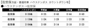 【ハウステンボス】2:04発 ⇒【佐世保】2:23着