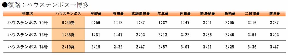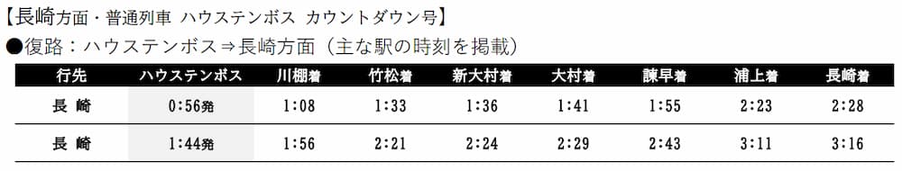 【ハウステンボス】0:56発 ⇒【長崎】2:28着