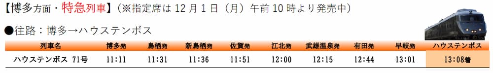 臨時特急「ハウステンボス」|博多 行き