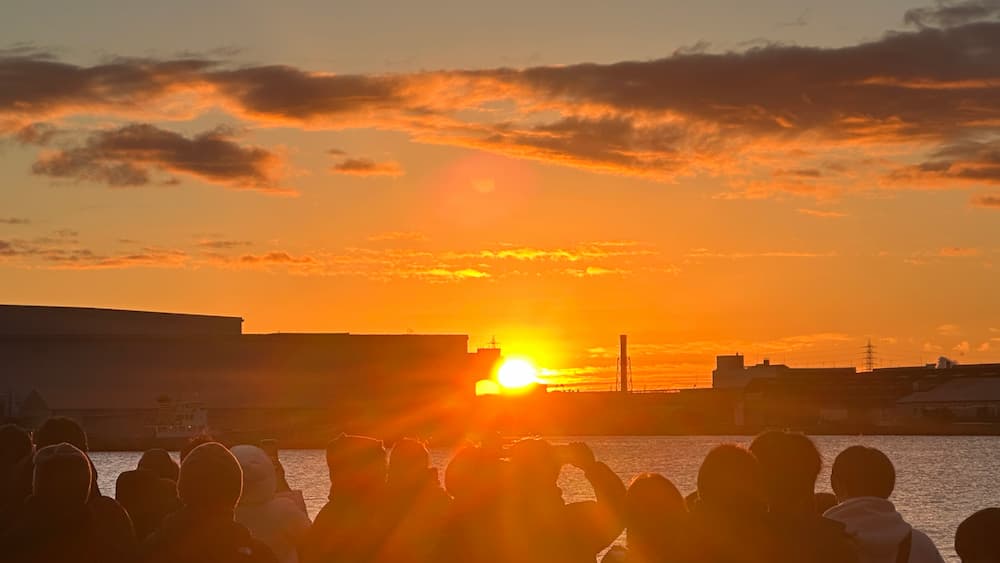 駐車場からクルマを走らせて名古屋港へ。無事に初日の出を拝み倒しました。