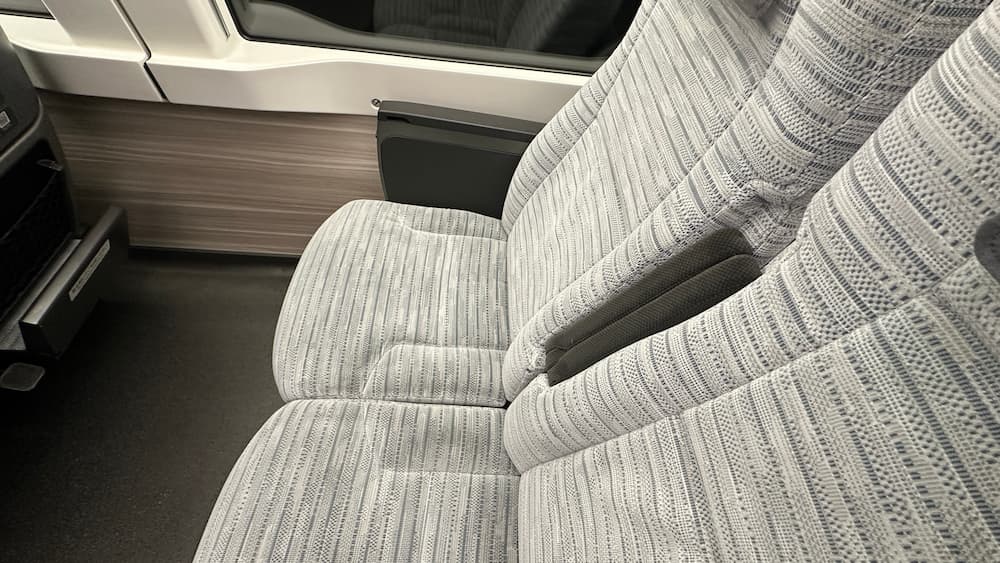 特急「ひのとり」のレギュラーシートはリクライニング角度に応じて座面がスライドします。