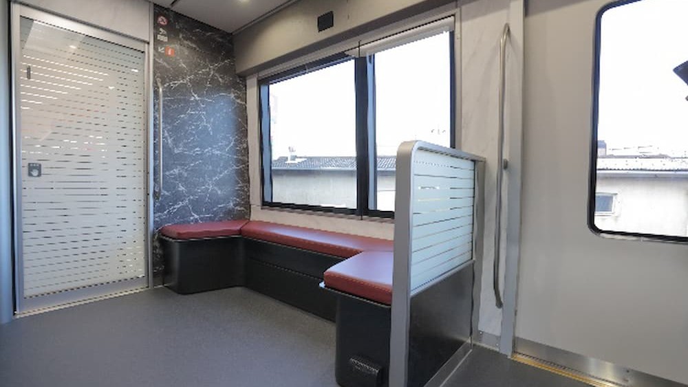 ベンチスペースはレギュラーシートの2号車と7号車(6両編成では2号車と5号車)。