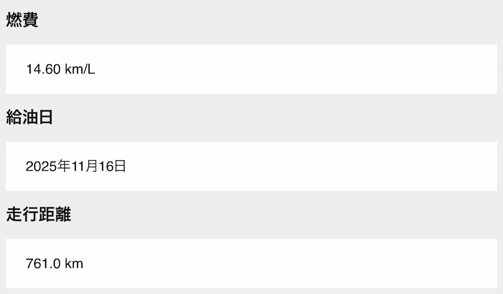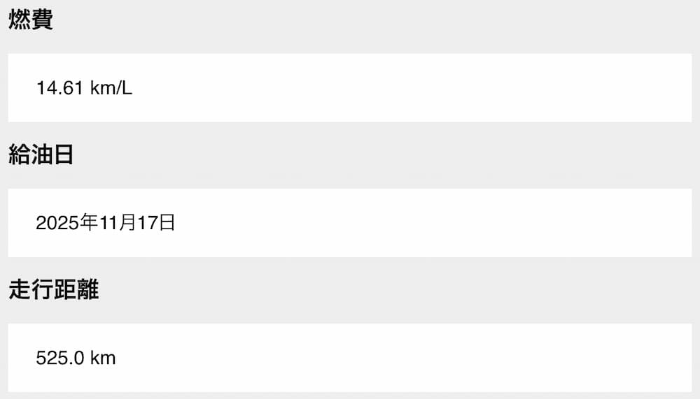 添加剤:LOOPパワーショット|2025年10月11日注入後3回目の給油