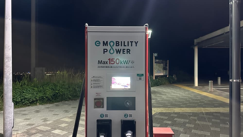 EVの急速充電器設備も充実。最大150KWの充電(30分制限なので1回90KW)が可能です。