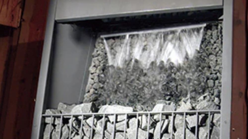 サウナストーンが積まれており、オートロウリュ対応の全自動タイプです。