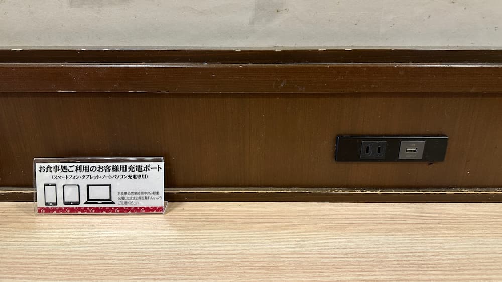 お食事処内にあるので美味しい食事を楽しみながら充電・作業ができます。