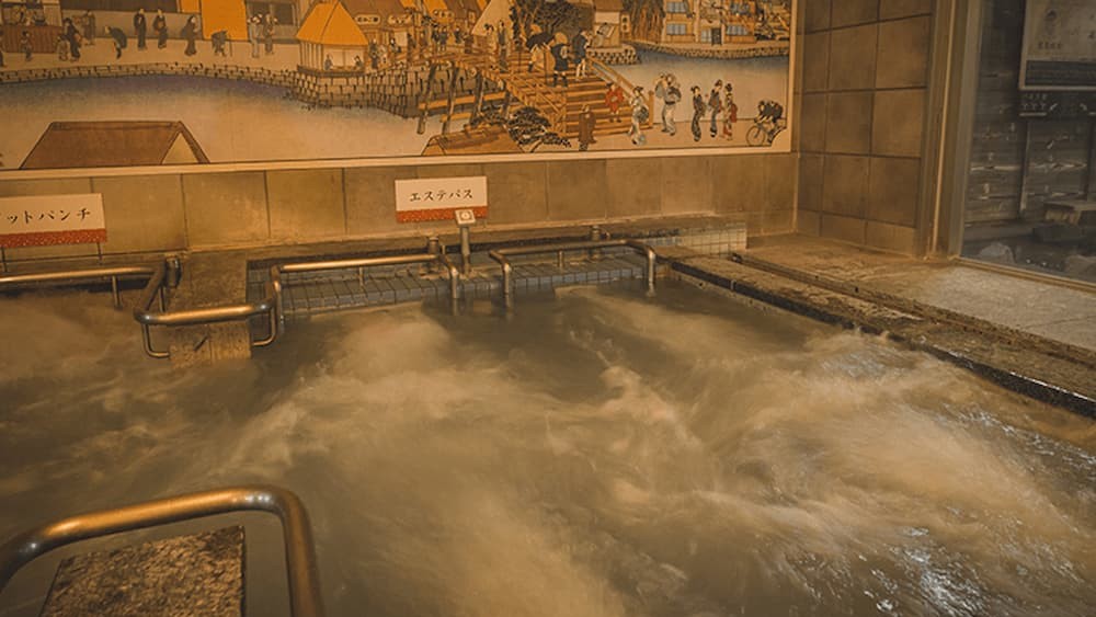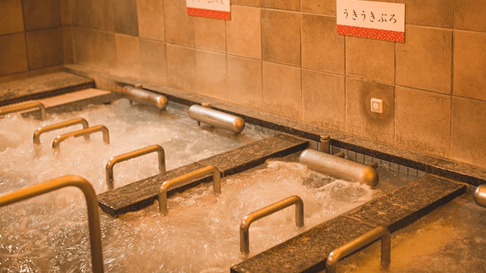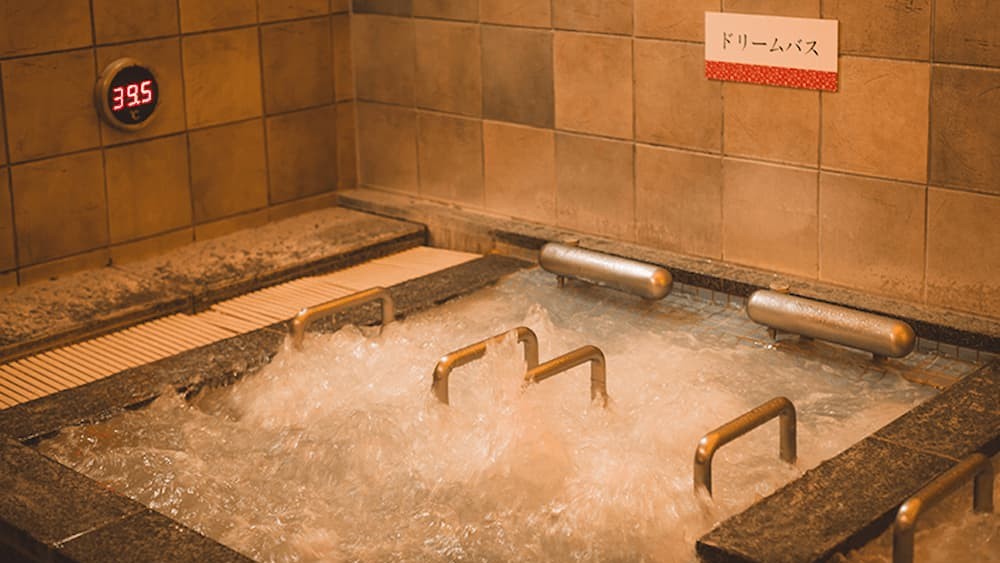 和漢炭酸湯と同じ浴槽に設けられた「ヘルツバス」はその名の通り電気的刺激が感じられるお風呂。