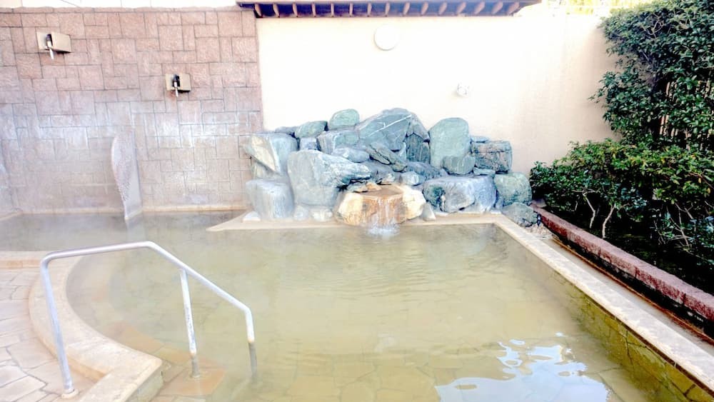 露天風呂を含めると全部で3つのお風呂(水風呂は除く)がありますが、淡褐色で微白濁の湯は掛け湯の熱さがウソみたいにちょうどいい温度。