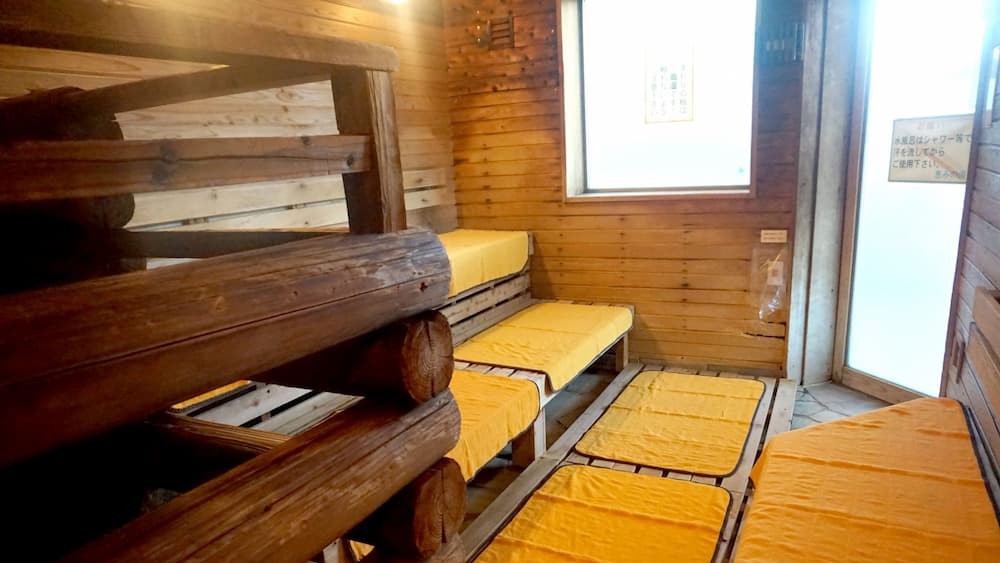 1段ベンチで奥の方ではスチームが内ももに直撃するようでかなり熱かったですね。