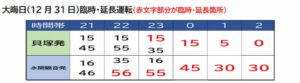 赤字は大晦日のみ運転される「臨時便」及び「延長運転」
