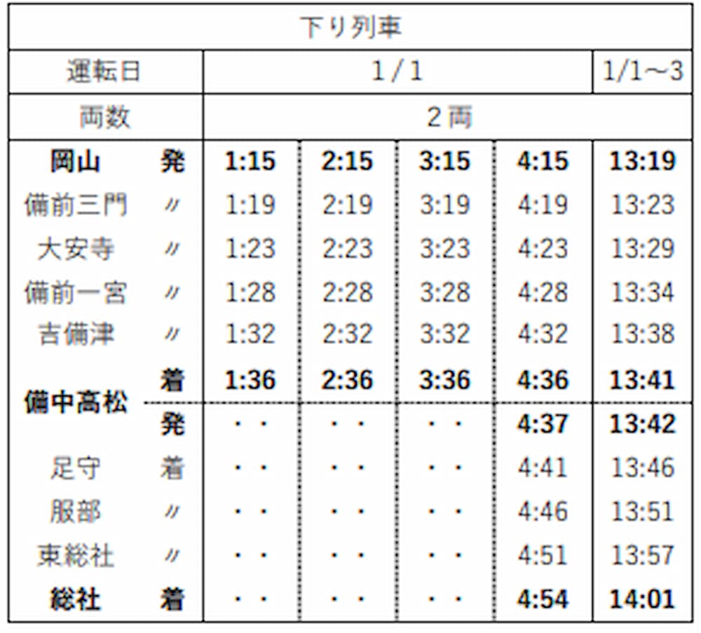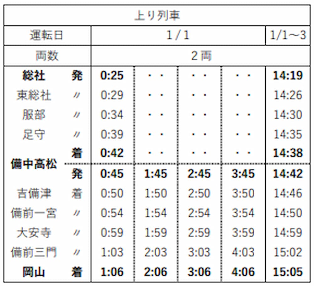 【JR西日本】岡山エリアの年末年始ダイヤまとめ