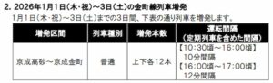 大晦日終夜運転まとめ2025 ー 2026【京成】