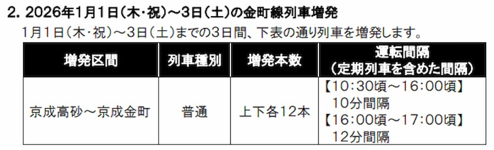 【京成金町線】1月1日~3日は金町線で増発列車が運行