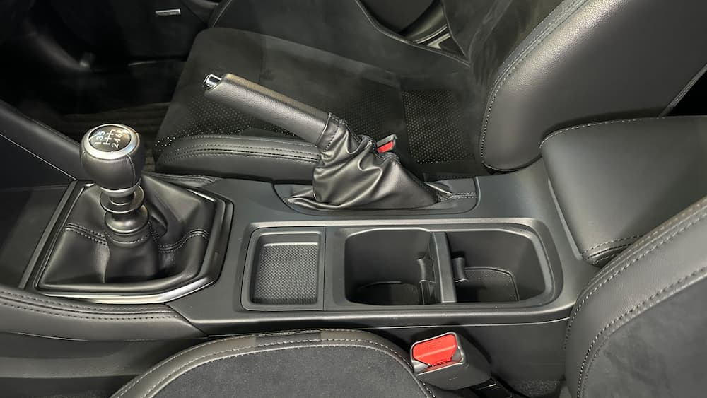 S4やレヴォーグ(レイバック含む)のセンターコンソールはCVT用に設計されているので高めに配置されており、多少の包まれ感が演出されているのですが、『WRX STI Sport#(プロトタイプ)』のセンターコンソールはかなり低くなっています。