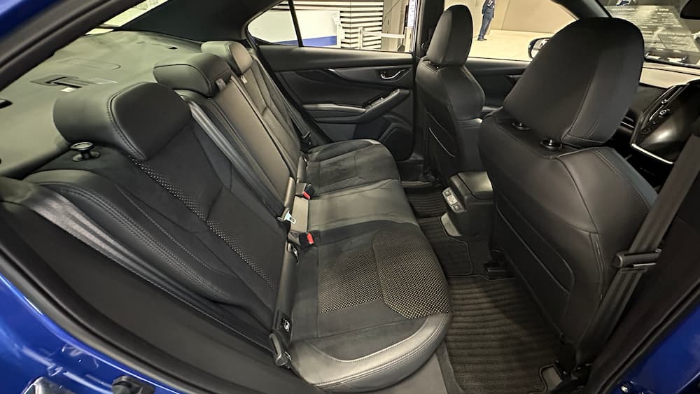 そして、展示車にはオプションの「STIエアロパッケージ(チェリーレッド)」「STIスカートリップ(チェリーレッド)」が装着されています。