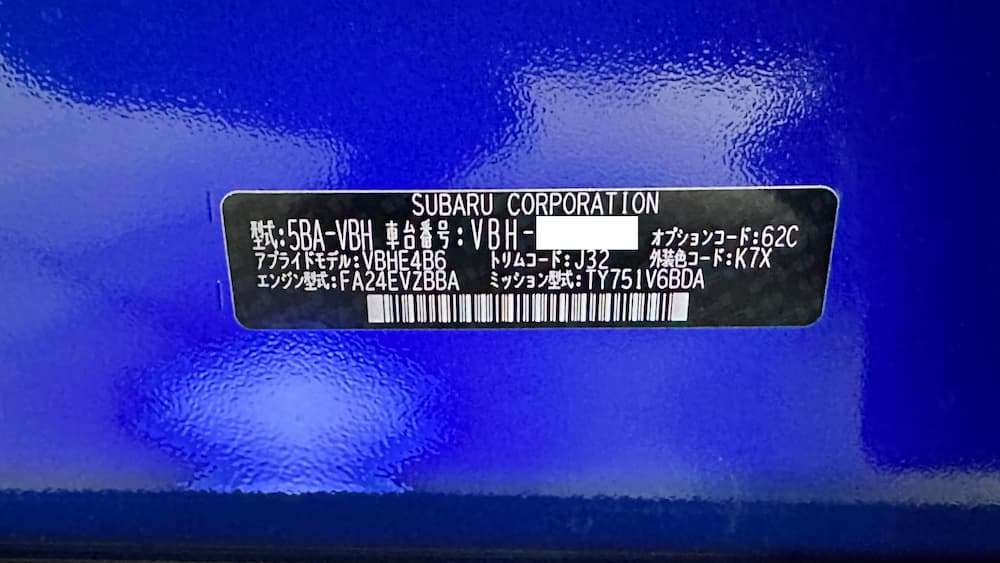 細かいことですが、『WRX STI Sport#(プロトタイプ)』の型式はS4同様の「VBH」でした。