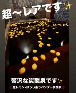 そんな炭酸泉がキャンペーンを実施。上記の通り“生レモン×ほうじ茶ラベンダー”のコラボでずっと入っていたい炭酸泉なのでした。